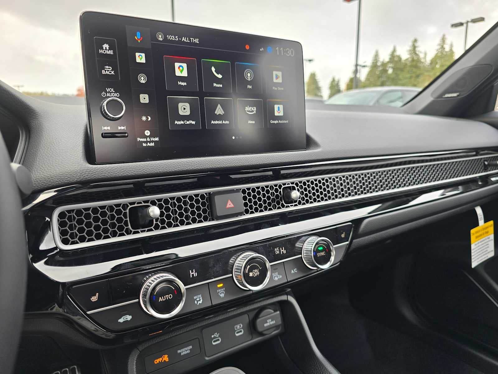 - Radio: Bose Premium Sound System -inc: 12 speakers w/subwoofer, 9" color touchscreen, Google built-in (includes 3-years unlimited data plan for in-vehicle apps), Alexa built-in, Bluetooth® HandsFreeLink and streaming audio, HondaLink, HondaLink subscription services, Speed-Sensitive Volume Compensation (SVC), Radio Data System (RDS), wireless Apple CarPlay and wireless Android Auto compatibility, Wi-Fi hotspot capability, USB-C 3.0A smartphone/audio interface/charging port and HD Radio